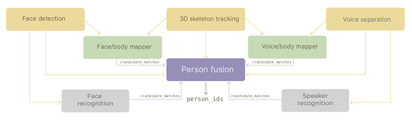 El diseño de ROS4HRI sigue un enfoque modular, derribando las barreras entre distintos sistemas de percepción, asegurando que los robots puedan procesar información humana de manera coherente, independientemente de los sensores o algoritmos que se utilicen, siempre en línea con la filosofía abierta de ROS2. Sus componentes principales son: